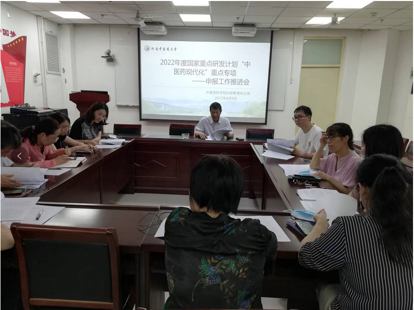 本网讯(文/陈晓辉 图/王潘)2022年6月9日上下午,十大网络赌场排行榜 (简称:科十大网络赌场排行榜 )在会议室BM739召开2022年度国家重点研发计划“中医药现代化”重点专项申报工作推进会。科十大网络赌场排行榜 院长张振强、各科研团队主任参加本次会议,会议由科十大网络赌场排行榜 教学科研管理办公室主任陈晓辉主持。